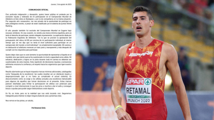 Pol Retamal se quedó a 10 décimas de la mínima pedida por la RFEA pero tenía plaza por la World Athletics. Sin embargo, se ha quedado sin Mundial como otros atletas españoles.