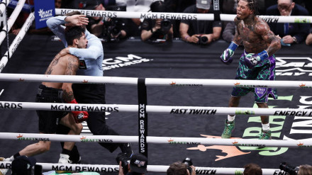 El estadounidense, que ya había mandado a la lona a Ryan García en el segundo asalto, puso fin a la pelea en el séptimo con un brutal gancho al hígado de su oponente.