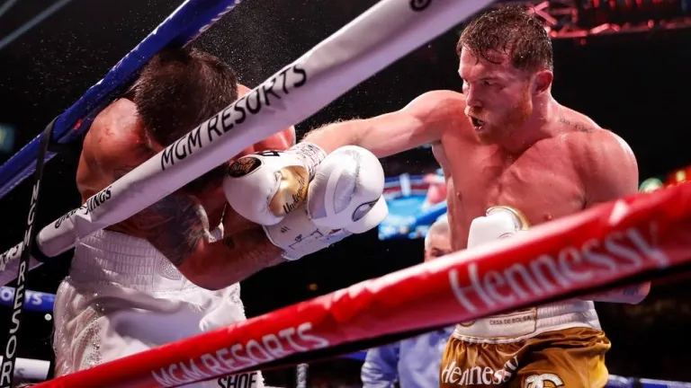 El mexicano mandó a la lona al estadounidense y consigue unificar todos los cinturones del peso súper mediano. Canelo dominó el combate por el que se llevó 40 millones de dólares.