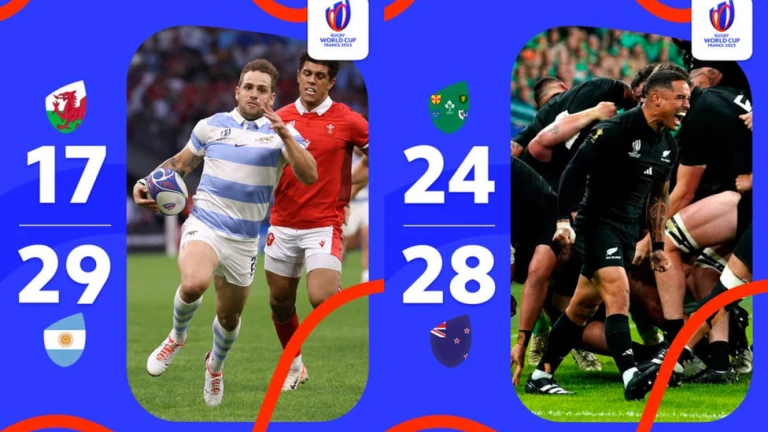 Incidencias: Segundo partido decuartos de final de la Copa del Mundo del Rugby disputado en el Estadio de Francia en Saint-Denis ante casi casi 80.000 espectadores. Debido a la proximidad geográfica, los aficionados irlandeses dominaron de forma abrumadora en las gradas. Con este resultado, Nueva Zelanda y Argentina disputarán la primera semifinal, el próximo viernes 20 en este mismo estadio.