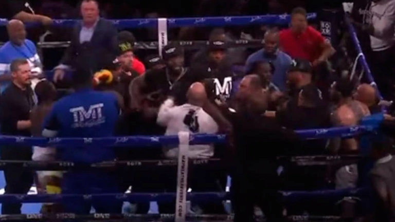 John Gotti no paraba de lanzar insultos a Mayweather provocando su propia descalificación, que no aceptó, e inicio una pelea paralela, lo que provocó una batalla campal y amenazas.