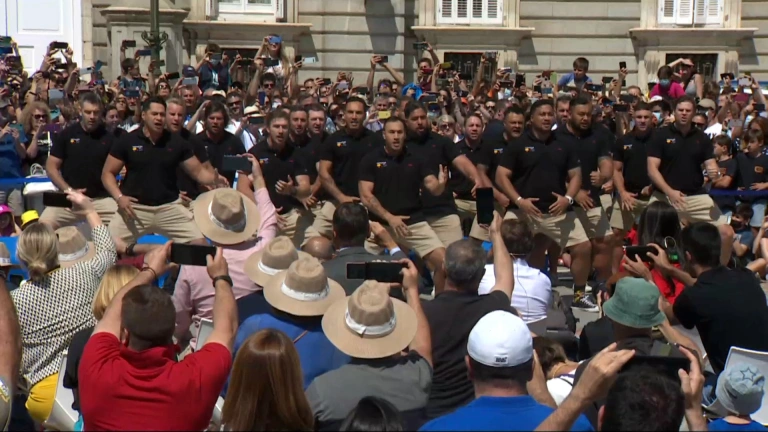 Al finalizar, los jugadores neozelandeses han protagonizado la tradicional ceremonia con la que equipo agradecerá a la ciudad su acogida en una semana tan especial como la de las fiestas de su patrón, San Isidro.