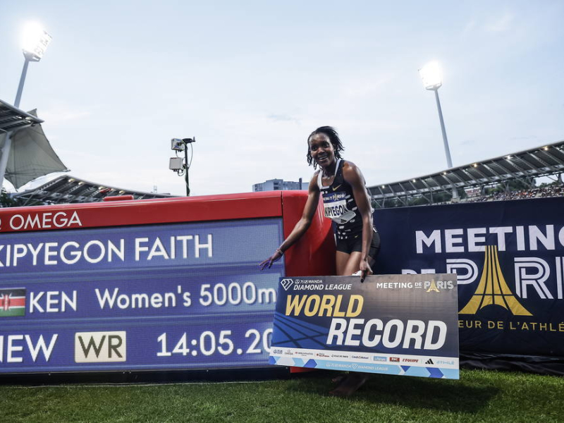 La atleta keniana Faith Kipyegon batió este viernes el récord del mundo de los 5000 metros gracias a su victoria en 14:05.20 durante el Meeting de Paris, cuarta parada de la Diamond League, mientras que el etíope Lamecha Girma y el noruego Jakob Ingebrigtsen también establecieron nuevas plusmarcas mundiales, respectivamente, en los 3000 metros obstáculos y en las dos millas.