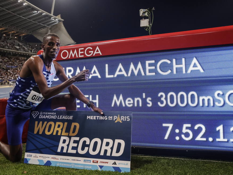 Lamecha Girma puso el colofón con su 7:52.11 en los 3000 obstáculos, siendo el tercer récord mundial durante la noche parisina. El japonés Ryuji Miura terminó en la segunda posición con 8:09.91, nueva plusmarca de su país, y el español Dani Arce acabó tercero, con un registro de 8:10.63 que vale como mínima para el próximo Campeonato del Mundo.