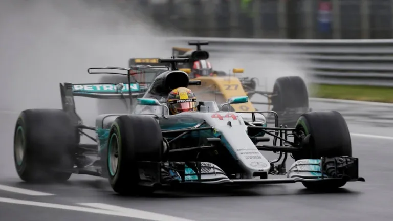 El británico fue el más rápido en una calificación marcada por la lluvia que tuvo que posponerse más de 2 horas tras un accidente de Grosjean. Con la pole, la 69ª de su carrera, Lewis Hamilton arrebata a Michael Schumacher el récord histórico.