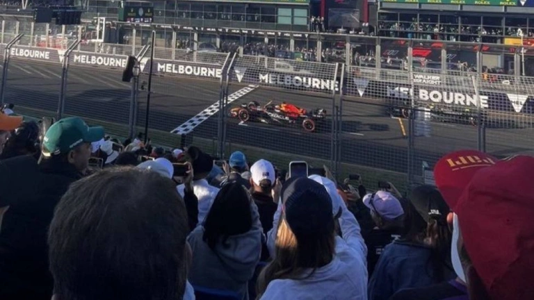 Una de las imágenes del accidentado Gran Premio de Australia de Fórmula 1 se ha producido en la tercera salida. Después del accidente de Kevin Magnussen y la segunda bandera roja en la prueba, los pilotos se colocaban de nuevo en la parrilla para una carrera a solo dos vueltas.