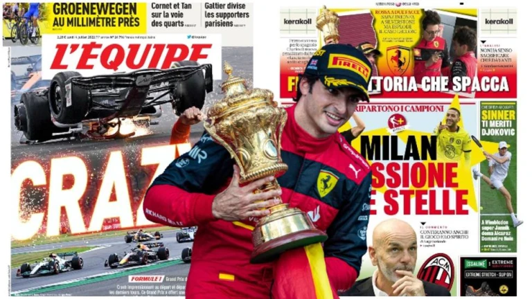 La prensa española elogia la primera victoria del madrileño en la Fórmula 1, mientras que Italia destacan el cabreo de Leclerc con Ferrari por no cambiarle los neumáticos.