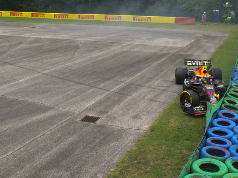 Y eso que los comisarios húngaros le ayudaron a volver a arrancar y a poder salir de la hierba en la que sus neumáticos traseros, intermedios pero mojados, se habían quedado varados. Como Sainz, 'Checo' Pérez provocó una roja, a los 5 minutos de sesión, al pisar la hierba y estrellarse contra un muro lejano, destrozando el morro de su Red Bull.