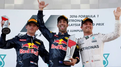 Doblete de RedBull en Malasia, que se vieron beneficiados por la rotura de motor de Hamilton a falta de 15 vueltas para el final. Acompañando a Ricciardo en el podio estuvieron Verstappen y Rosberg. El alemán también se aprovechó del abandono de su compañero de equipo y se acerca al Mundial. Alonso remontó 15 puestos y pudo puntuar. Sainz acabó 11º.