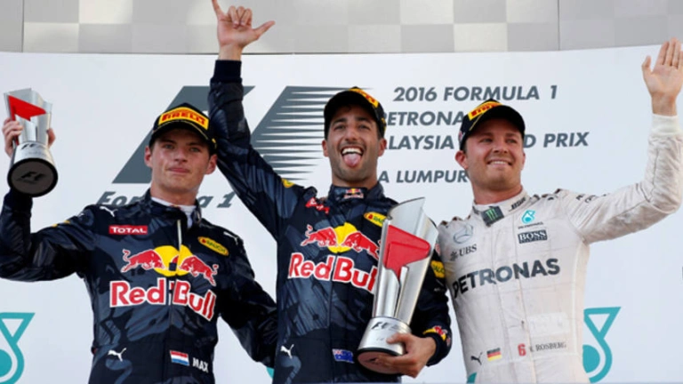 Ricciardo, junto a Verstappen y a Rosberg, en el podio de Malasia (FOTO - Reuters)