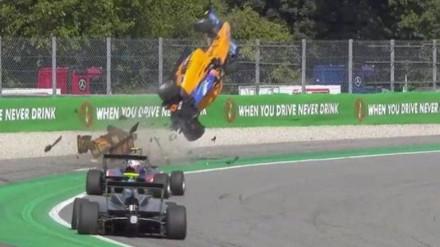 El piloto australiano del Campos piso uno de los pianos disuasioros en Monza y su monoplaza salió volando. Peroni resulto ileso.