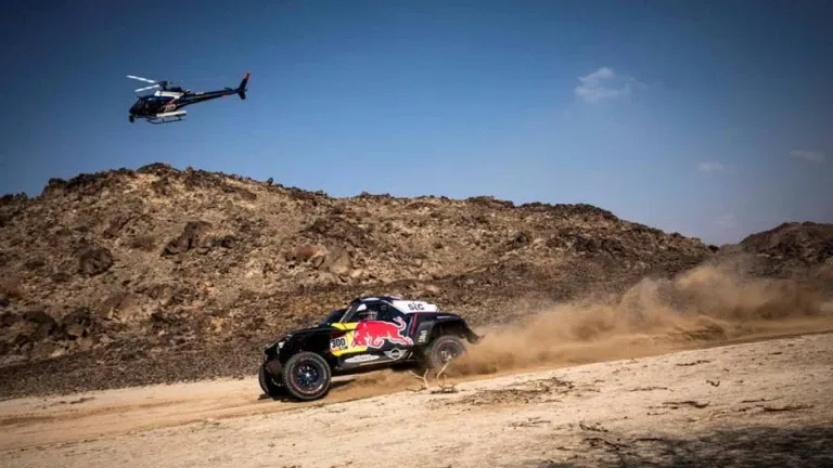 Sainz era segundo en el kilómetro 222. Cedía entonces 3 minutos y 44 segundos con respecto al francés pero, cuando parecía abocado a la segunda posición en la etapa de este domingo, reaccionó a lo grande. Llegó a Bisha con 25 segundos de ventaja frente a Stéphane Peterhansel.