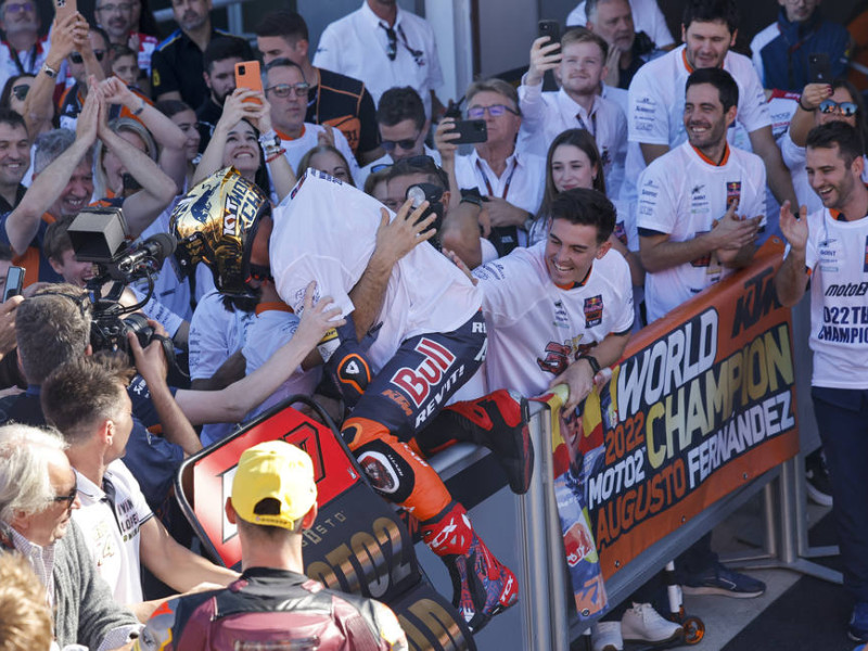Los españoles Pedro 'Tiburón' Acosta (Kalex) y Augusto Fernández (Kalex), protagonizaron la 'carrera perfecta' en el Gran Premio de la Comunidad Valenciana de Moto2 disputado en el circuito 'Ricardo Tormo' de Cheste con victoria del primero y con el segundo, en ese puesto, proclamándose campeón del mundo. Acosta suma su tercera victoria de la temporada, tras las conseguidas en el circuito italiano de Mugello y en el también español de Motorland Aragón.