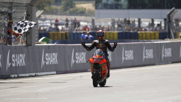 El español se llevó la victoria en Le Mans por delante de Arón Canet y del tailandés Chantra. Pedro Acosta, que salía desde la pole, se cayó cuando marchaba en primera posición.