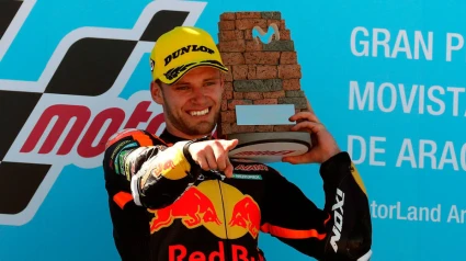 El surafricano Brad Binder (KTM) consiguió su primera victoria en el mundial de Moto2 al imponerse en el Gran Premio de Aragón que se disputó en el circuito Motorland de la localidad turolense de Alcañiz, en donde el italiano Francesco Bagnaia (Kalex), segundo, consiguió ampliar su ventaja en la clasificación provisional del mundial.