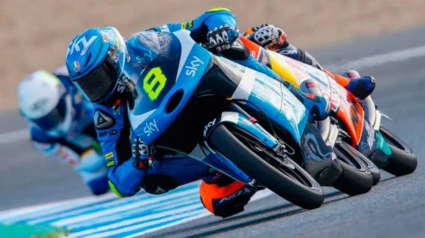 El italiano Niccolo Bulega (KTM) ha obtenido la primera pole de su carrera deportiva al ser el más rápido en la categoría de Moto3 para el Gran Premio de España que este domingo, se disputará en el circuito de Jerez de la Frontera. Bulega marcó su mejor tiempo en el séptimo giro y ninguno de sus rivales fue capaz de batirlo, por lo que le secundaron el surafricano Brad Binder (KTM) y el español Jorge Navarro (Estrella Galicia 0'0 Honda), que saldrán junto a él en la primera línea de la formación de salida de la primera carrera del mundial en España. La sesión oficial de entrenamientos comenzó con una temperatura más baja tanto en el ambiente como en el asfalto, lo que provocó un pequeño cambio en la puesta a punto de las motos, pero prácticamente todos los pilotos de Moto3 buscaron rápido los límites de sus mecánicas. En apenas tres vueltas Jorge Navarro ya consiguió situarse líder (1:47.001) a escasas milésimas de segundo de su mejor tiempo del fin de semana (1:46.928), secundado por el italiano Enea Bastianini (Honda) y un ambicioso Jorge Martín (Mahindra). Los entrenamientos no habían hecho más que comenzar pero el ritmo estaba muy cerca ya de los mejores tiempos de la categoría durante el fin de semana y con apenas unas milésimas entre los primeros clasificados. Ya en la segunda mitad de los entrenamientos el ritmo cambió completamente y encabezados por el italiano Nicolo Bulega (KTM) con un tiempo de 1:46.223, la situación dio un giro radical al bajar de 47 segundos los cinco primeros clasificados, entre ellos los españoles Jorge Navarro -segundo- y Juanfran Guevara -quinto-, si bien es cierto que todavía quedaba una última parada en el taller para poner el último neumático nuevo de los clasificatorios. El italiano Niccolo Antonelli (Honda), que logró situarse tercero en su octava vuelta, se fue por los suelos en el siguiente giro, lo que le obligó a regresar a su taller con la moto dañada y cojeando sensiblemente. Una vez más los diez últimos minutos desataron la guerra de los rebufos con la clara intención de lograr una mejoría en los tiempos, aunque los más rápidos de la categoría buscaron 'un hueco' en la pista que les permitiese rodar en solitario, no siempre con el resultado apetecido. Antonelli tuvo tiempo de salir nuevamente a pista para intentar defender su quinta plaza, como también Enea Bastianini, quien sufrió un ligero percance que no le impidió acabar los entrenamientos, en una zona de la pista en la que fueron muchos los pilotos que se acabaron saliendo de la misma, la inmensa mayoría sin llegar a caer. Al final el italiano se mantuvo en la quinta plaza, justo por delante de su compatriota y, con ellos, merced al cuarto mejor tiempo, estará en la segunda línea de la formación de salida el también italiano Francesco Bagnaia (Mahindra). En la tercera línea concluyeron los españoles Joan Mir (KTM) y Juanfran Guevara (KTM), junto al italiano Romano Fenati (KTM), quien comenzó muy bien los entrenamientos pero poco a poco su rendimiento se estancó. El joven debutante Arón Canet (Estrella Galicia 0'0 Honda) logró la undécima posición, con Jorge Martín (Mahindra), que llegó a estar en las posiciones de cabeza, decimocuarto, el piloto invitado Albert Arenas (Mahindra), decimosexto y la fémina María Herrera (KTM), en la trigésimo tercera posición.