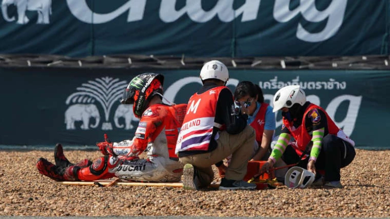 "No puedo dar más detalles sobre eso. Ha sido un fallo técnico. No ha sido mi culpa por inclinar más o por el freno trasero ni nada por el estilo", agregó. "Si ya era difícil correr como estaba esta mañana, ahora la situación ha empeorado bastante más, pero no me quiero precipitar hasta que pase la noche y vea cómo me encuentro al levantarme", explicó Lorenzo, quien aseguró tener el "OK" médico para salir el sábado.
