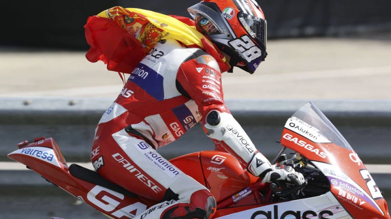 El piloto español Izan Guevara (GasGas) ha firmado la victoria en la carrera de Moto3 del Gran Premio de España, sexta cita del Mundial de motociclismo, con un espectacular adelantamiento en la última vuelta que le ha permitido liderar el podio íntegramente español en Jerez junto a Sergio García (GasGas), que es todavía más líder del campeonato, y de Jaume Masià (KTM).