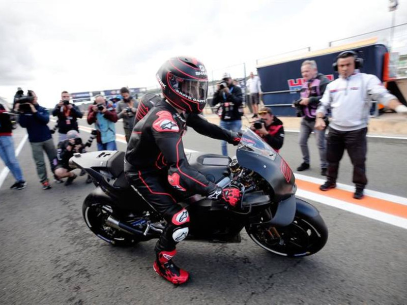 El piloto mallorquín ha probado en la mañana de este martes su nueva moto Honda que utilizará la próxima temporada.