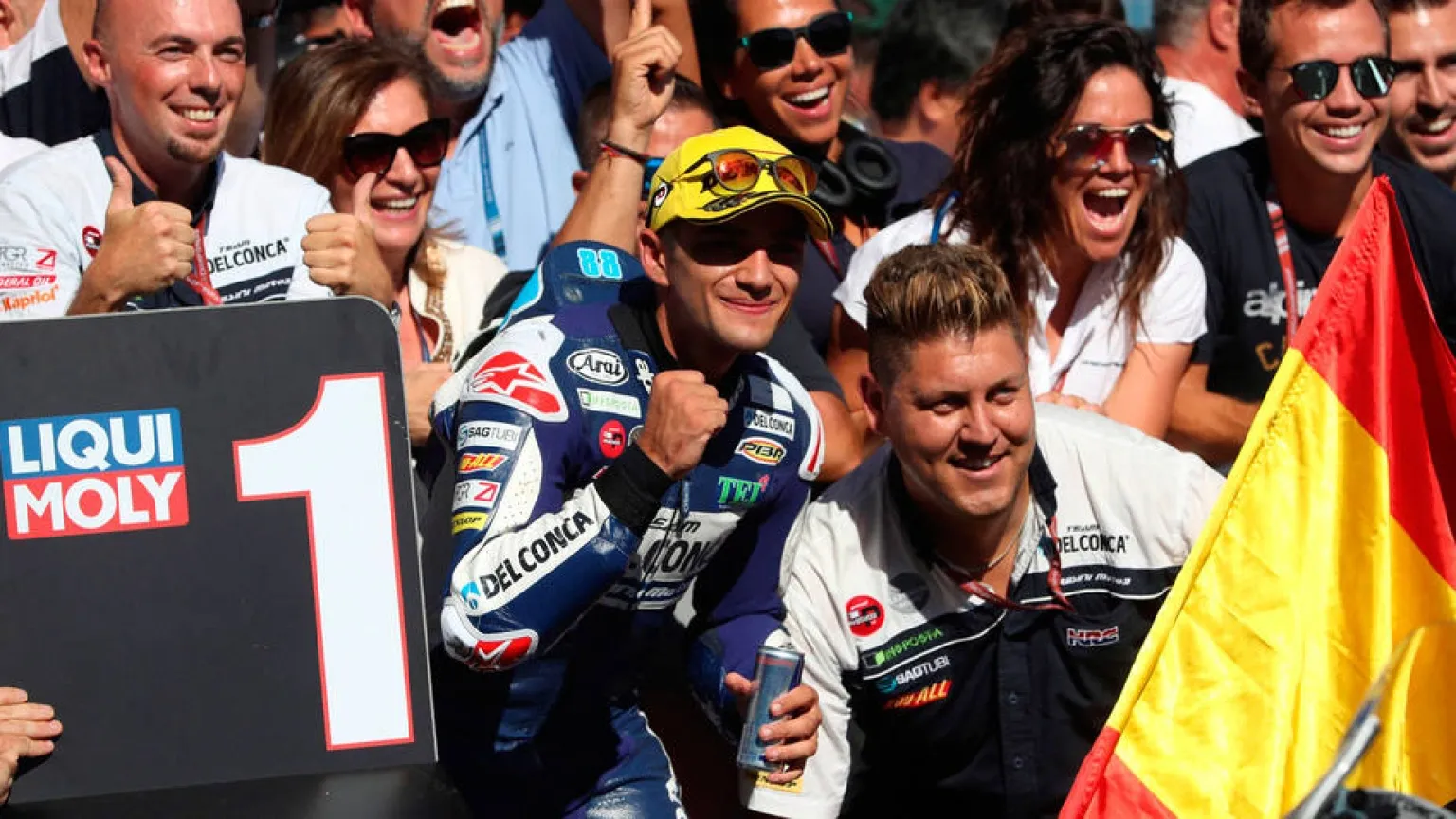 Jorge Martín celebra su victoria en el Gran Premio de Aragón. EFE