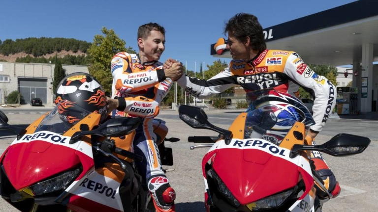 Los campeones del mundo Jorge Lorenzo y Álex Crivillé han explicado su respectiva llegada al Repsol Honda Team, que está de 25º aniversario, y han compartido experiencias después de rodar juntos en moto por carretera y hasta el circuito Parcmotor de Castellolí (Barcelona).