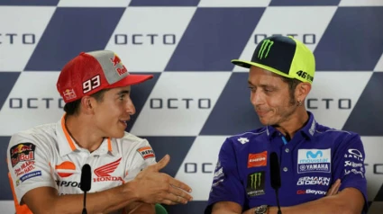 El piloto de Repsol Honda, Marc Márquez, tendió la mano durante la conferencia de prensa de este jueves a Valentino Rossi, en un gesto público para intentar hacer las paces por sus diferencias del pasado, pero el italiano se la negó y el español restó importancia a su actitud al afirmar que "la vida sigue, no pasa nada".
