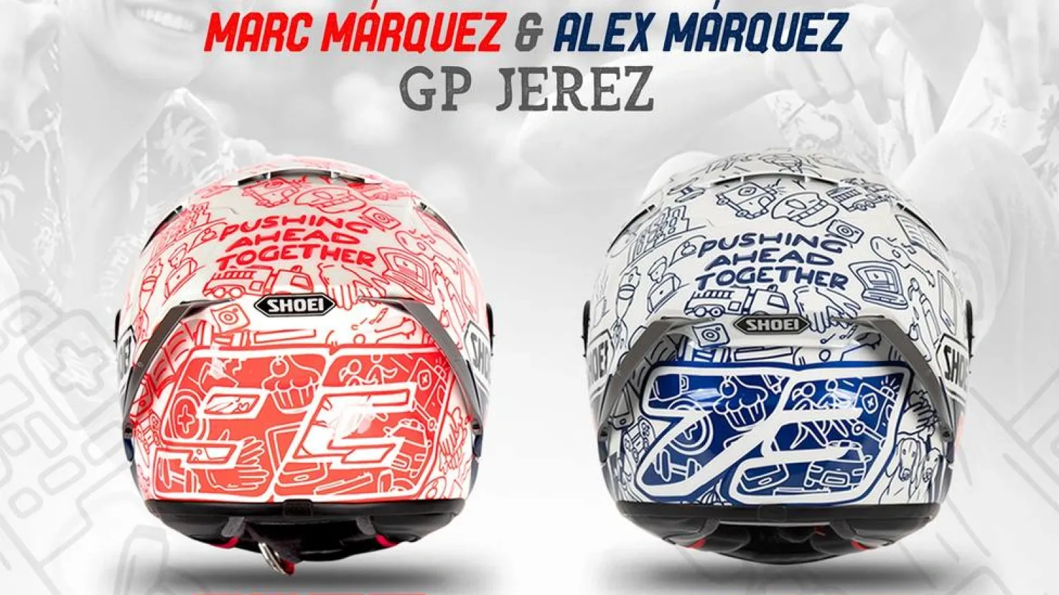 'Pushing Ahead Together' ('Empujando juntos') es el lema que lucirán en el casco, rojo el de Marc y azul el de Álex, para enviar un mensaje de "solidaridad, gratitud y esperanza". El casco lo llevarán en un día muy especial ya que será la primera vez que competirán juntos de forma oficial en la categoría de MotoGP, en el Repsol Honda Team, y lo donarán --juntos a los guantes y las botas especiales--.