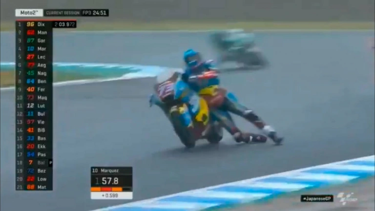 El piloto de Estrella Galicia 0'0 fue protagonista de la jornada al protagonizar una espectacular "salvada" durante los tercero entrenamientos libres, en los que su moto le intentó "descabalgar" en la curva de entrada a meta y al más puro estilo de los rodeos el líder del mundial asió el manillar de su moto desde la parte izquierda y consiguió controlar y para la misma sin llegar a rodar por los suelos en ningún momento.