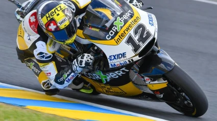 El suizo saldrá en cabeza en Le Mans, su primera pole del año, tras ser el más rápido en la calificación de Moto2 por delante de los italianos Bagnaia y Morbidelli.