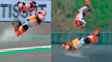 El piloto de Repsol Honda sufrió un total de cuatro caídas a lo largo del fin de semana en Indonesia, la última de ellas muy fuerte -voló por los aires a más de dos metros de altura-, aunque las dos caídas en la primera clasificación fueron a muy alta velocidad.