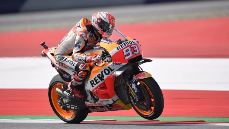 El español Marc Márquez (Repsol Honda RC 213 V) se impuso por segunda vez consecutiva en los entrenamientos oficiales para el Gran Premio de Austria de MotoGP que este domingo se disputa en el circuito Red Bull de la localidad de Spielberg.