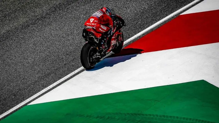 Petrucci esperó su oportunidad en la apurada de frenada de la primera curva tras la larga recta de Mugello para meterse con más valor y decisión que lógica por el interior y superar así tanto a Dovizioso como a Márquez, que era quien iba más fuera de la trazada y que a la postre entró segundo a 43 milésimas de segundo.