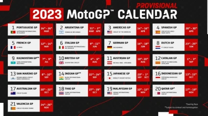 El calendario de 2023 tendrá una serie de carreras seguidas como serán las de Portugal y República Argentina al principio de la temporada, Cataluña y San Marino en el mes de septiembre, India y Japón a finales de septiembre y principios de octubre, o triples, como las de Italia, Alemania y Países Bajos, que se disputarán en fines de semana consecutivos en junio, o triples, como Indonesia, Australia y Tailandia en octubre, y Malasia, Qatar y Comunidad Valenciana en noviembre.