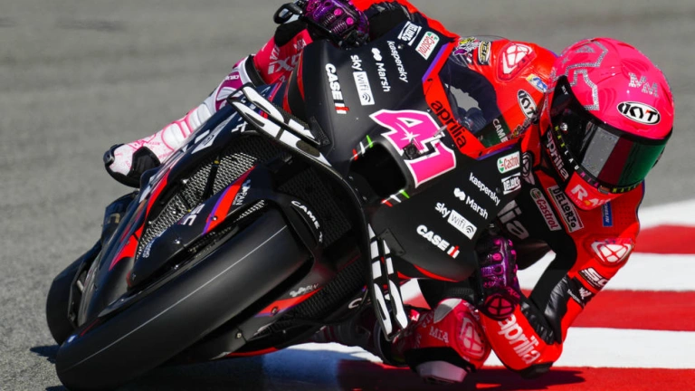 El mayor de los Espargaró voló en la segunda tanda del trazado catalán ante su afición --es de Granollers, al lado del Circuit-- para conseguir el mejor tiempo y seguir de 'dulce' con Aprilia, con un crono de 1:39:402 con el que privó a su compañero Maverick Viñales de alzarse con el mejor tiempo por dos décimas.