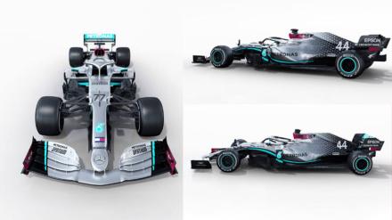La escudería Mercedes ha presentado su nuevo monoplaza que sigue las línes del coche del año pasado con la diferencia de tener un morro en caída.