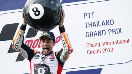 El piloto catalán se coronó a lo grande, a falta de cuatro carreras y ganando el GP de Tailandia. Es el sexto Mundial de MotoGP para Marc Márquez.