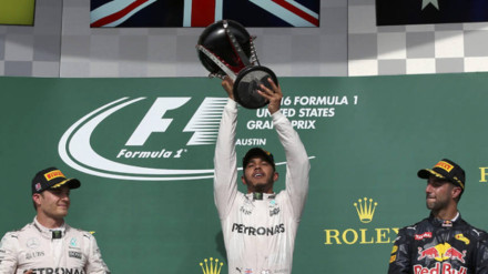 El actual campeón logró este domingo la victoria en el Gran Premio de México, y se sitúa a 19 puntos del líder del campeonato, el alemán Nico Rosberg, segundo. Finalmente, el tercero ha sido Ricciardo por sanciones a Verstappen y a Vettel. Fernando Alonso y Carlos Sainz acabaron en los puestos decimotercero y decimosexto, respectivamente.