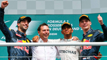 El inglés Lewis Hamilton fortaleció su liderato en el Mundial de Fórmula Uno tras ganar el Gran Premio de Alemania por delante de los Red Bull de Ricciardo y Verstappen. Alonso y Carlos Sainz se quedaron sin puntuar.