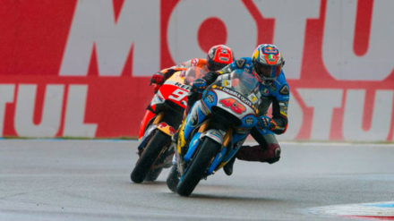 Con Bastianini al frente, su compatriota Niccolo Antonelli ocupó la segunda posición, por delante del español Arón Canet, que fue tercero a pesar de sufrir una caída que dejó su moto algo dañada.