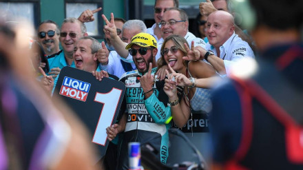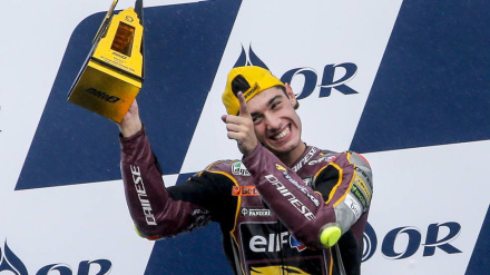 El italiano se llevó el triunfo por delante de Sasaki y de su compatriota Rossi. Izan Guevara, quinto, en Tailandia, será campeón del mundo si gana en Australia.