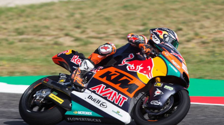 El piloto español culminó una gran jornada para el motociclismo nacional con triplete en Misano. Le acompañaron en el podio Arón Canet y Augusto Fernández, nuevo líder de Moto2.