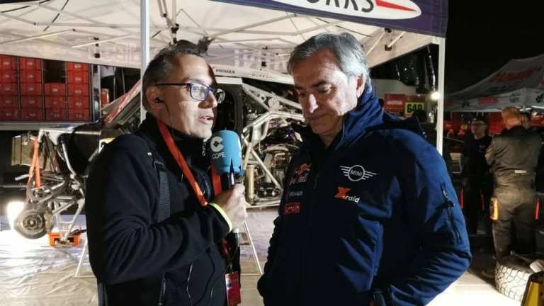 Carlos Sainz se va a la jornada de descanso en el Rally Dakar con el liderato en coches. El enviado especial de la Cadena COPE a Arabia Saudí, Carlos Miquel, habló con el piloto madrileño: