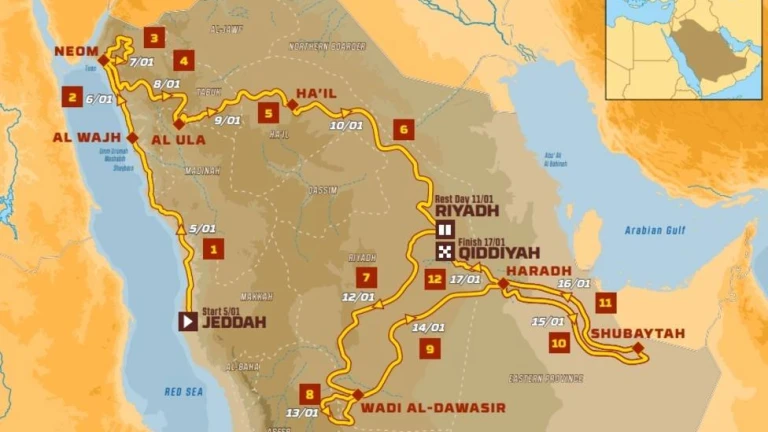 El rally más importante del mundo comenzará el domingo 5 de enero en la localidad costera de Jeddah, la segunda ciudad más importante del país, y concluirá el viernes 17 de enero en Qiddiyah, una ciudad que comenzó a construirse el año pasado.