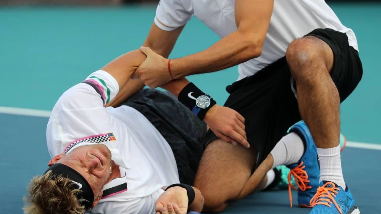 El español abandonó la pista ayudado por varias personas tras sufrir un colapso, totalmente acalambrado, después de desaprovechar hasta ocho bolas para sellar su victoria sobre Zverev. La tensión sufrida en esos momentos le pasó factura en el tercer set, empezó a sufrir calambres y cayó al suelo. Luego pudo recuperarse poco a poco, para abandonar el partido como pudo..