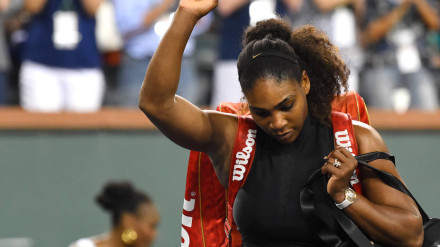 Serena Williams se despidió por la vía rápida del Másters 1.000 de Miami tras perder en su debut por 6-3 y 6-2 con la japonesa Naomi Osaka, reciente ganadora en Indian Wells. Garbiñe Muguruza pasó a tercera ronda sin jugar tras la retirada de la estadounidense Amanda Anisimova.