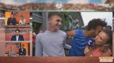 El tenista francés echó un brazo por un hombro de la periodista de Eurosport y comenzó a besarle el cuello, impidiendo que ella se zafara del acoso, grabado por las cámaras.