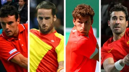 Roberto Bautista, Feliciano López, Pablo Carreño y Marc López, en la Copa Davis ante Rumanía