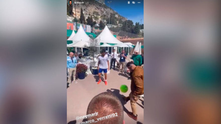 Djokovic publica en sus redes sociales el vídeo del rondo que echaron entre los tres con una pelota de tenis gigante.