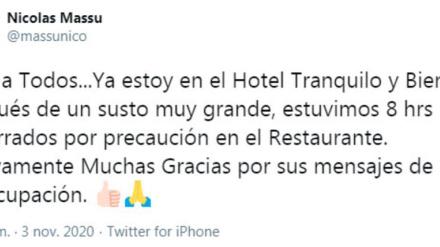 "Estoy en el centro de Viena muy cerca del ataque y nos tienen adentro de un restaurante esperando hasta ver cuándo podemos irnos de aquí", escribió el extenista chileno.