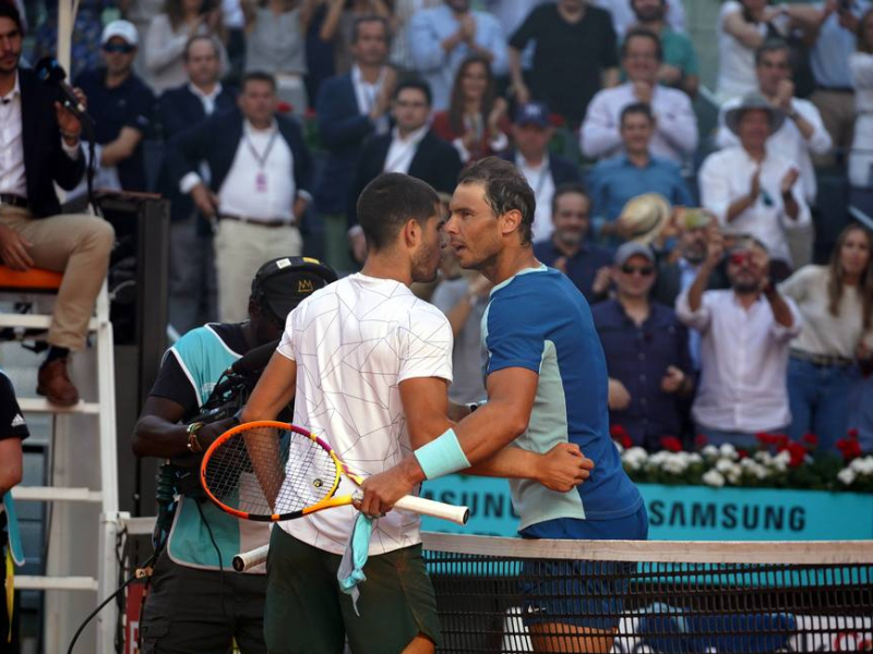 Rafael Nadal (SPA) vs Carlos Alcaraz (SPA) during the Mutua Madrid Open